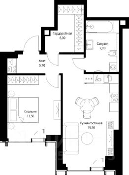 Продаётся 1-комнатная квартира общей площадью 52.10 м² без отделки в ЖК VEER на 26-м этаже 59 этажного дома.