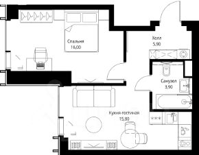 Продаётся 1-комнатная квартира общей площадью 41.60 м² без отделки в ЖК VEER на 26-м этаже 59 этажного дома.