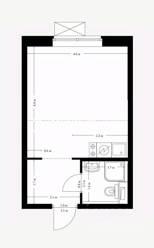 - Светлая квартира-студия, расположенная на 12-ом этаже 17-ти этажного корпуса, общей площадью 21.3м²;