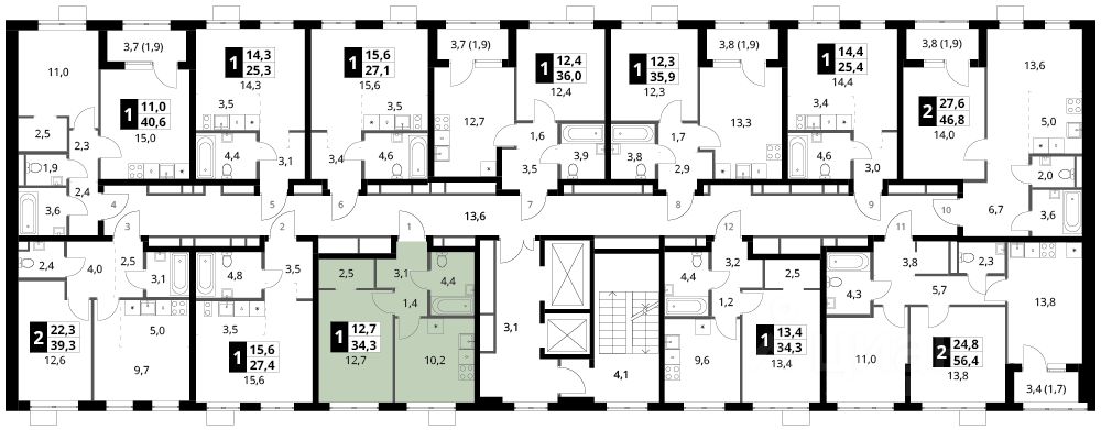 Продаётся 1-к квартира номер 142 общей площадью 34.3 кв.м. на 5-м этаже 16 этажного здания. Отделка Whitebox.