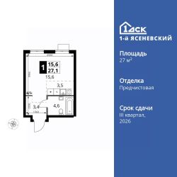 Продаётся квартира-студия номер 255 общей площадью 27.1 кв.м. на 14-м этаже 16 этажного здания. Отделка Whitebox.