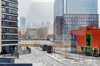 Проект разработан известным бюро UNK project в стиле современный урбанизм. Фасады облицованы натуральным камнем, кирпичом и стемалитом. Комплекс занимает территорию в 14 га на Шелепихинской набережной.