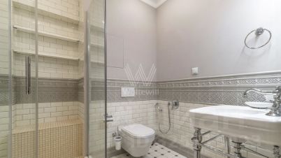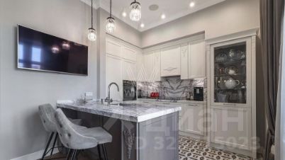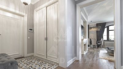 Квартира с 2 спальнями общей площадью 107 м² в комплексе премиум-класса "Итальянский квартал" в Тверском районе. Квартира с дизайнерской отделкой расположена на 4 этаже. Интерьер оформлен в неоклассическом стиле и украшен декоративными молдингами, авторской живописью. Санузлы отделаны плиткой ручной работы и натуральным камнем. Квартира укомплектована мебелью из Италии и бытовой техникой.