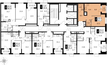Продаётся 2-к квартира номер 234 общей площадью 42.2 кв.м. на 11-м этаже 25 этажного здания. Отделка Whitebox. Цена с учётом скидки.