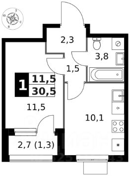 Продаётся 1-к квартира номер 961 общей площадью 30.5 кв.м. на 9-м этаже 25 этажного здания. Отделка Whitebox. Цена с учётом скидки.