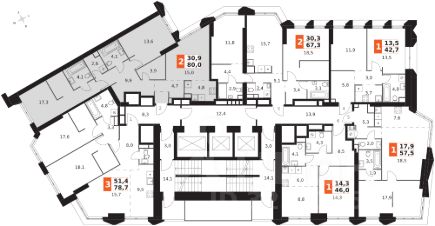 Продаётся 3-к квартира номер 1454 общей площадью 80 кв.м. на 39-м этаже 47 этажного здания. Без отделки. Цена с учётом скидки.