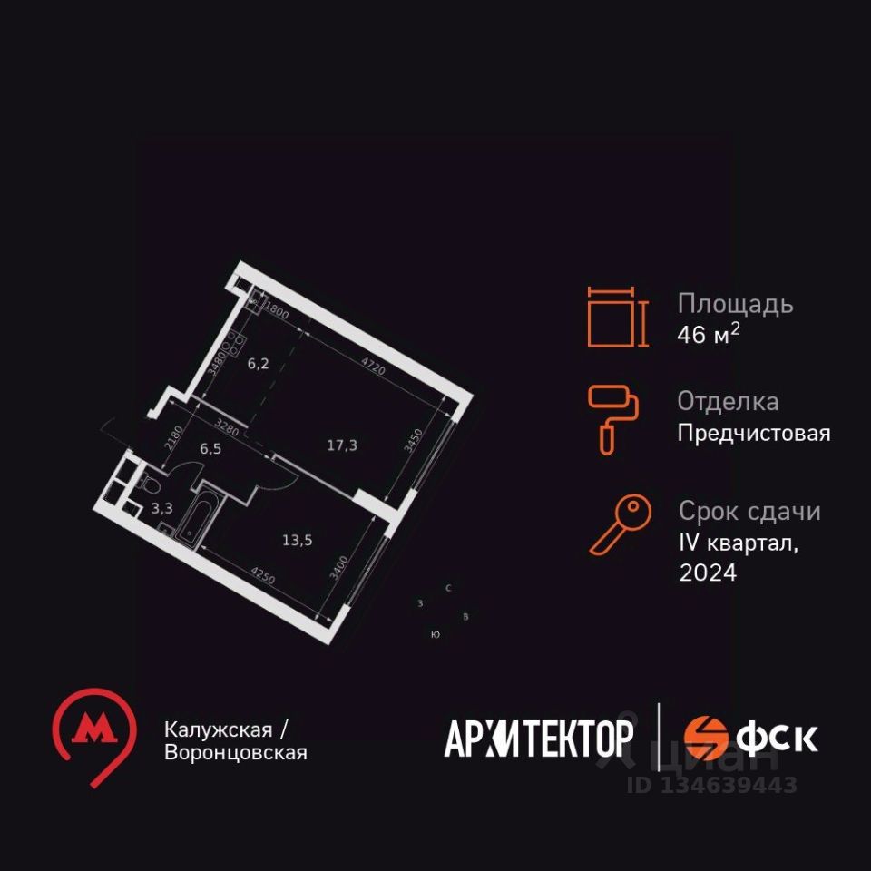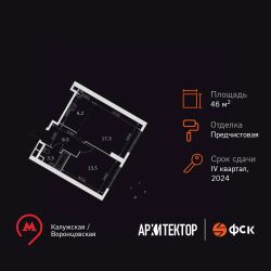 Продаётся 2-к квартира номер 422 общей площадью 46.8 кв.м. на 43-м этаже 46 этажного здания. Отделка Whitebox. Цена с учётом скидки.