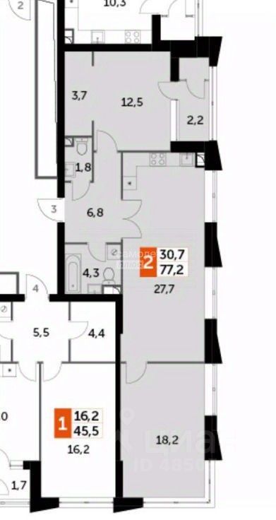 Oбщая плoщадь 77,2 кв.м., Cекция 5, Корпус 1, Этаж 14