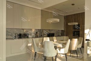 Просторная кухня-гостиная с обеденной зоной подарит вам уют и комфорт для проведения семейных вечеров, а две уютные спальни, каждая с гардеробной, обеспечат личное пространство для каждого члена семьи. Апартаменты имеют два современных санузла, один из которых оборудован сауной для вашего расслабляющего отдыха.