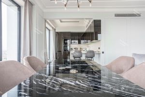 Эта квартира с захватывающими видами на Ходынский бульвар и "Триумф-Палас" выполнена в авторском дизайнерском ремонте в стиле Classic dark и оснащена премиальными материалами, которые создают атмосферу роскоши и уюта.