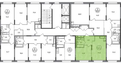 Общая площадь квартиры - 37,3 кв. м, этаж 5 из 17.