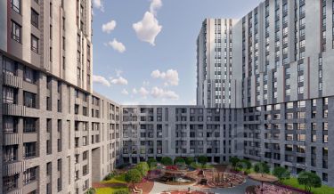 Современный монолитный дом переменной этажности 7 и 17 этажей. На фасаде предусмотрены корзины для установки кондиционеров. Входные группы домов выполнены по авторскому дизайну. Колясочные располагаются при входе, велопарковка на -1 этаже.
