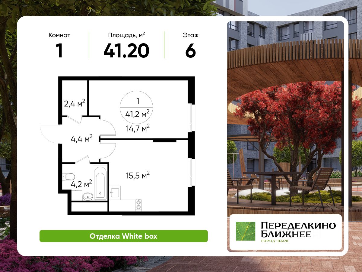 Общая площадь квартиры - 41,2 кв. м, этаж 6 из 17.