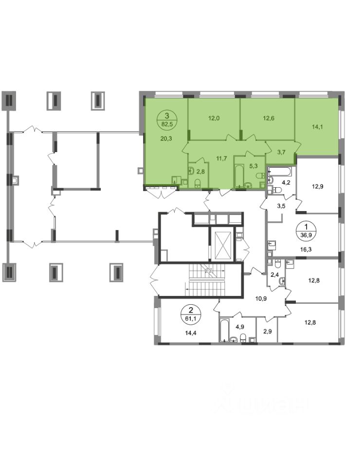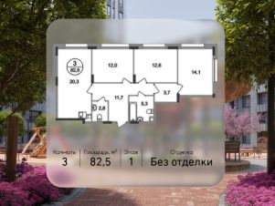 Общая площадь квартиры - 82,5 кв. м, этаж 1 из 17.