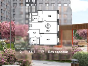Общая площадь квартиры - 64,1 кв. м, этаж 17 из 20.