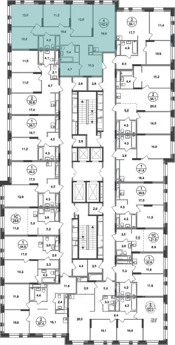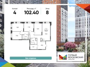 Общая площадь квартиры - 102,4 кв. м, этаж 8 из 20.