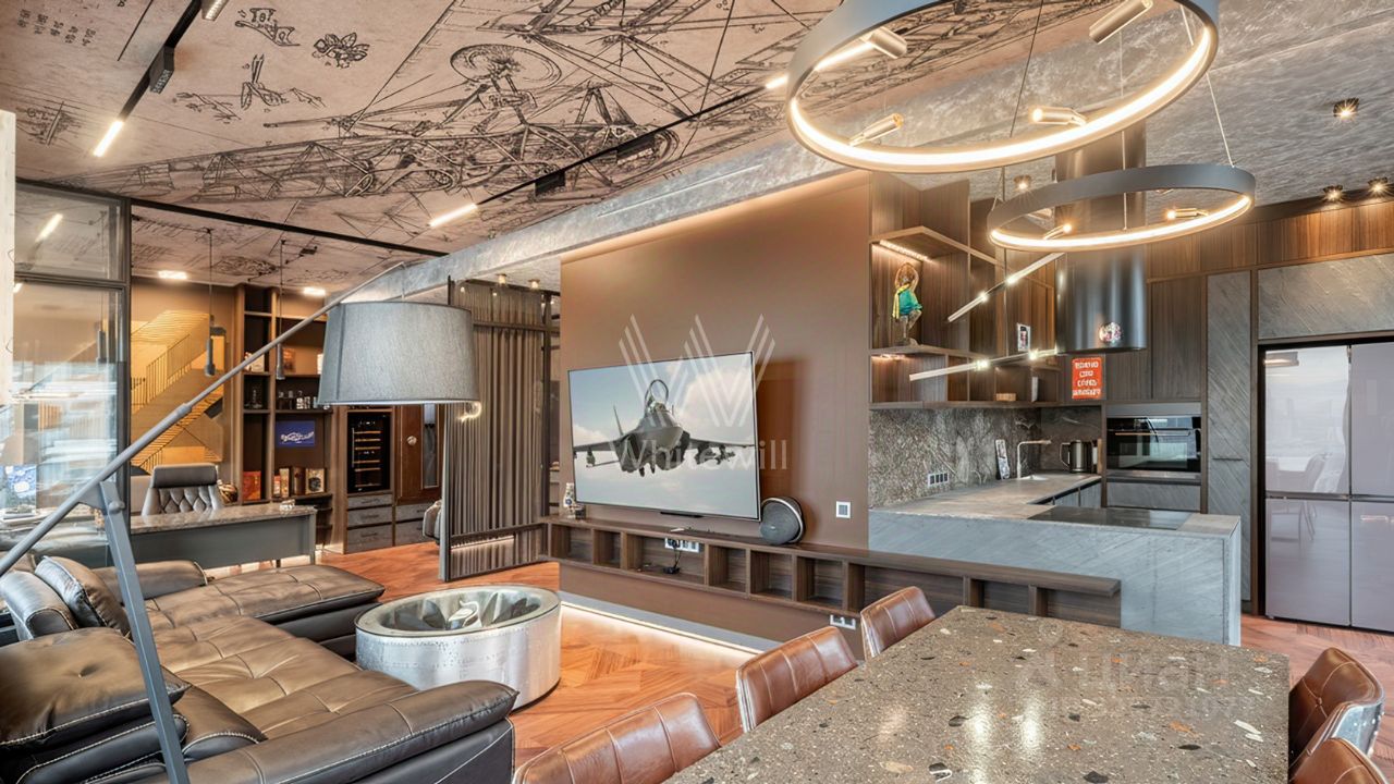 Квартира полностью меблирована и укомплектована бытовой техникой. Функциональная планировка включает кухню-гостиную с обеденной и ТВ зонами, спальню, кабинет, который можно оборудовать как вторую спальню, ванную комнату, гардеробную и холл. Благодаря панорамным окнам, ориентированным на две стороны, пространство наполнено естественным светом и теплом.