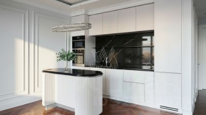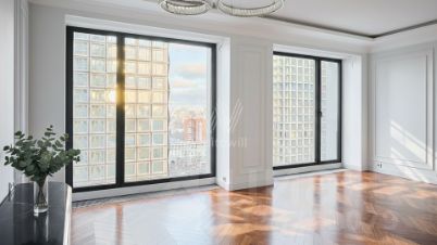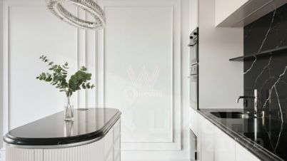 Просторная квартира с одной спальней общей площадью 68 м² в комплексе премиум-класса Prime Park. Квартира расположена в корпусе R3 на 19 этаже, с видами в благоустроенный двор-парк и на город в сторону Останкинской башни. Дизайнерский интерьер оформлен в стиле современной классики. Планировка: светлая кухня-гостиная с двумя окнами, спальня со своей ванной комнатой и гардеробной, гостевой санузел, прихожая со встроенным гардеробом. Установлена кухня со встроенной техникой Kuppersbusch. Благодаря панорамному остеклению пространство наполнено естественным светом.