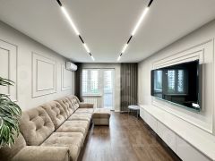 Двухкомнатная квартира площадью 53,6 кв.м. (без учета балкона) расположена в современном жилом комплексе с качественной отделкой и продуманной инфраструктурой. Объект полностью готов к проживанию: выполнен дизайнерский ремонт с использованием премиальных материалов, заменены инженерные коммуникации, включая электрику и сантехнику, установлены система теплого пола в мокрых точках, датчики протечки, многоступенчатые фильтры воды и современное освещение. Квартира продается с полной меблировкой и техникой — достаточно перевезти личные вещи.