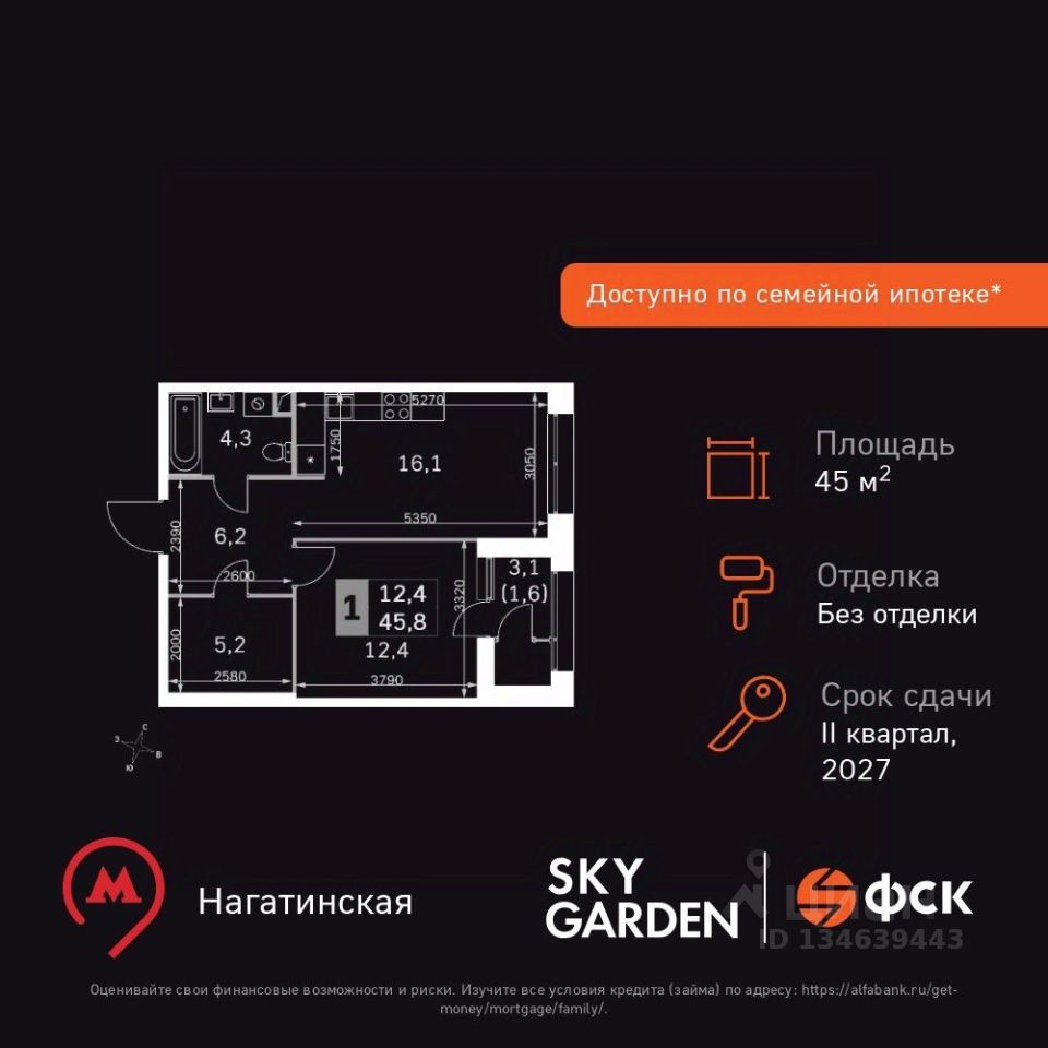 Продаётся 1-к квартира номер 122 общей площадью 45.8 кв.м. на 17-м этаже 29 этажного здания. Без отделки. Цена с учётом скидки.