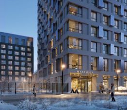 Четыре разноуровневых урбан-блока высотой 2, 6, 9 и 14 этажей с закрытым дворовым пространством, с подземным паркингом и террасами.