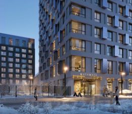 Четыре разноуровневых урбан-блока высотой 2, 6, 9 и 14 этажей с закрытым дворовым пространством, с подземным паркингом и террасами.