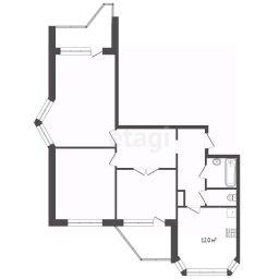 - Планировка: 3 комнаты (2 изолированные, 1 проходная гостиная) + кухня 12 м² с эркером