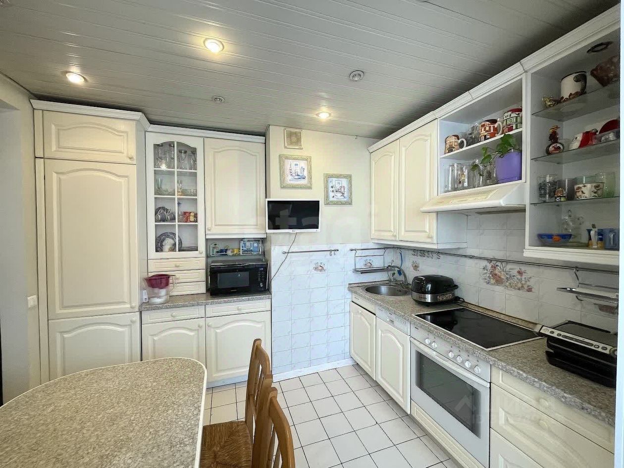 Кухня оснащена всей необходимой мебелью и техникой и это все остается новым собственникам. Из кухни есть выход на утепленную лоджию. с диваном.