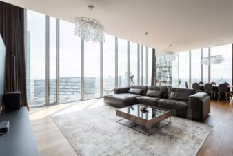 Панорамное остекление открывает захватывающие виды на столицу, наполняя пространство естественным светом и энергией.