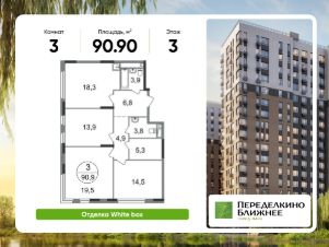 Общая площадь квартиры - 90,9 кв. м, этаж 3 из 17.