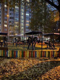 Во дворе дома большая детская площадка и спортивная с тренажерами.