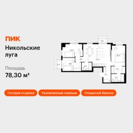 Продаётся 3-комн. квартира площадью 78,3 кв.м на 5 этаже 17 этажного дома (Корпус 4, Секция 3) проекта ПИК Никольские луга. Светлый просторный подъезд на уровне земли, функциональная планировка, большие окна, c отделкой.