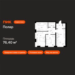 Продаётся 3-комн. квартира площадью 76,4 кв.м на 13 этаже 50 этажного дома (Корпус 1.5, Секция 2) проекта ПИК Полар. Светлый просторный подъезд на уровне земли, функциональная планировка, большие окна, предчистовая отделка.
