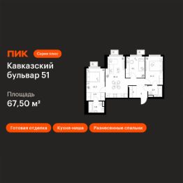 Продаётся 3-комн. квартира площадью 67,5 кв.м на 5 этаже 23 этажного дома (Корпус 3.2, Секция 2) проекта ПИК Кавказский бульвар 51. Светлый просторный подъезд на уровне земли, функциональная планировка, большие окна, c отделкой.