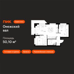 Продаётся 2-комн. квартира площадью 50,1 кв.м на 5 этаже 8 этажного дома (Корпус 1.1.2, Секция 2) проекта ПИК Онежский вал. Светлый просторный подъезд на уровне земли, функциональная планировка, большие окна, c отделкой.