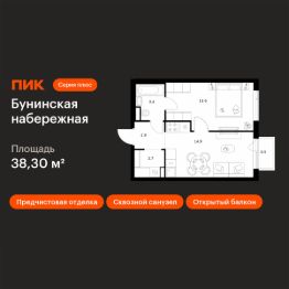 Продаётся 1-комн. квартира площадью 38,3 кв.м на 10 этаже 16 этажного дома (Корпус 2.6/1.2, Секция 2) проекта ПИК Бунинская набережная. Светлый просторный подъезд на уровне земли, функциональная планировка, большие окна, предчистовая отделка.