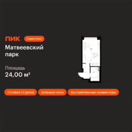 Продаётся квартира-студия площадью 24 кв.м на 23 этаже 31 этажного дома (Корпус 4.3, Секция 3) проекта ПИК Матвеевский парк. Светлый просторный подъезд на уровне земли, функциональная планировка, большие окна, c отделкой.