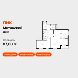 Продаётся 2-комн. квартира площадью 87,6 кв.м на 8 этаже 24 этажного дома (Корпус 15.1, Секция 1) проекта ПИК Митинский лес. Светлый просторный подъезд на уровне земли, функциональная планировка, большие окна, без отделки.