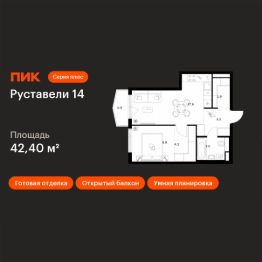 Продаётся 1-комн. квартира площадью 42,4 кв.м на 8 этаже 21 этажного дома (Корпус 3.7, Секция 3) проекта ПИК Руставели 14. Светлый просторный подъезд на уровне земли, функциональная планировка, большие окна, c отделкой.
