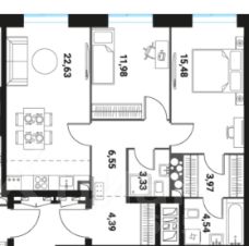 • Планировка: Функционал Евро-3. Просторная кухня-гостиная, две изолированные спальни, два полноценных санузла.
