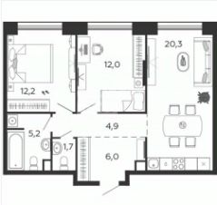 общая площадь: 62,3 м2;