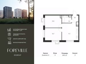 Предчистовая отделка в подарок! Пешая доступность от метро и московская прописка! Продается уютная 2-комн. квартира площадью 49,5 кв.м на 11 этаже 17 этажного жилого комплекса бизнес-класса Foreville от 3S Group.