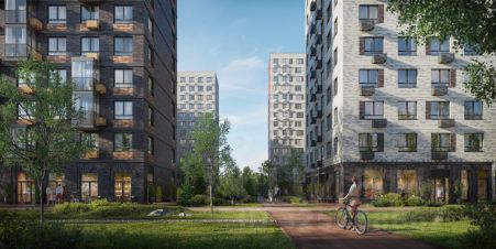 В проекте — монолитные дома высотой от 8 до 16 этажей. Фасады облицованы декоративным кирпичом естественных оттенков.