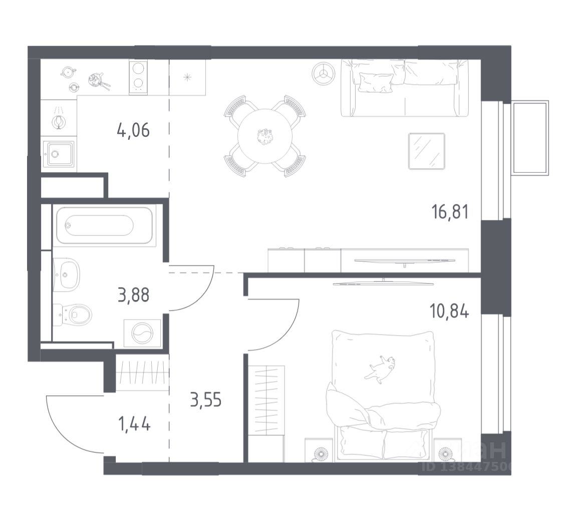 Строим кварталы для жизни с заботой о будущем. Предлагается 1-комнатная квартира комфорт-класса площадью 40,0 кв.м в корпусе 15 на 5-м этаже, в жилом комплексе "Алхимово".