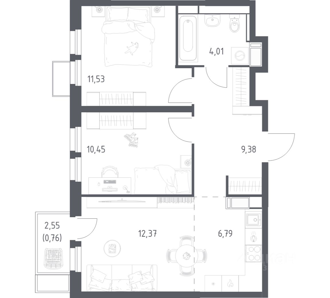 Строим кварталы для жизни с заботой о будущем. Предлагается 2-комнатная квартира комфорт-класса площадью 55,29 кв.м в корпусе 27 на 7-м этаже, в жилом комплексе "Большое Путилково".