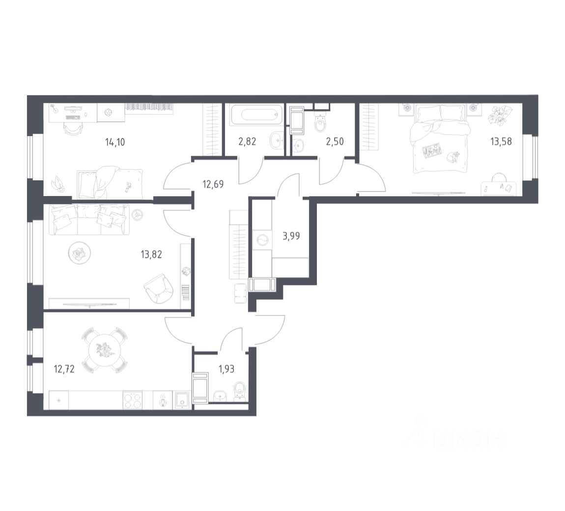 Строим кварталы для жизни с заботой о будущем. Предлагается 3-комнатная квартира комфорт-класса площадью 78,15 кв.м в корпусе 28 на 16-м этаже, в жилом комплексе "Большое Путилково".