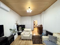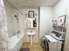 1-комнатная квартира общей площадью 59,4 кв м, включает кухонную зону 13.8 кв м. Выполнен ремонт в светлых тонах, комфортная планировка. Также установлен теплый пол по плитке (коридор, кухня, уборная). Окна выходят на внешнюю сторону с очень приятным зеленым видом. Спокойные и тихие соседи как по дому, так и по территории.
