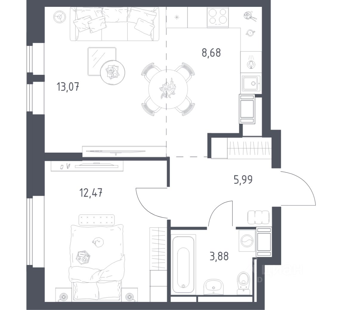 Строим кварталы для жизни с заботой о будущем. Предлагается 1-комнатная квартира комфорт-класса площадью 44,09 кв.м в корпусе 28 на 13-м этаже, в жилом комплексе "Большое Путилково".