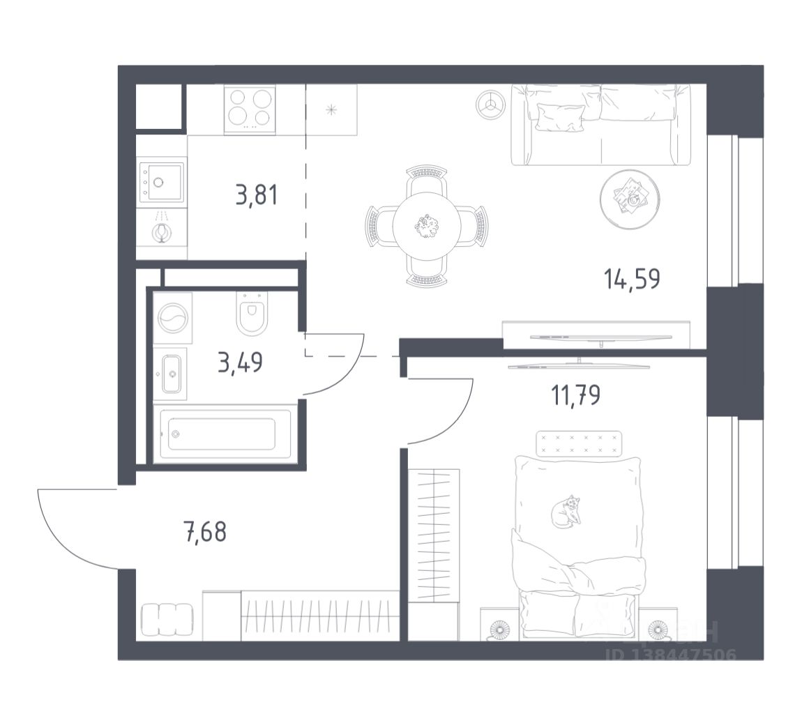 Строим кварталы для жизни с заботой о будущем. Предлагаются 1-комнатные апартаменты бизнес-класса площадью 41,36 кв.м в корпусе 2.1 на 6-м этаже, в жилом комплексе "Верейская 41".