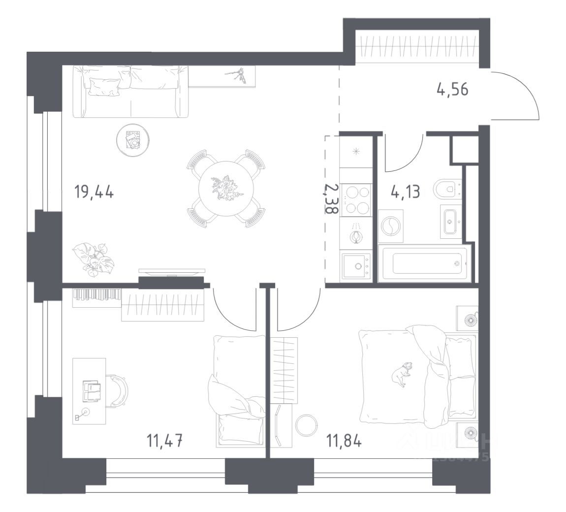 Строим кварталы для жизни с заботой о будущем. Предлагаются 2-комнатные апартаменты бизнес-класса площадью 53,82 кв.м в корпусе 1 на 6-м этаже, в жилом комплексе "Верейская 41".
